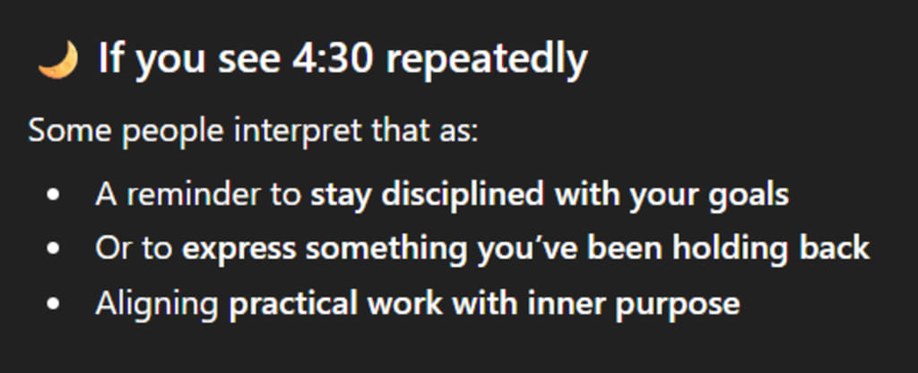 I remember when my intuition first kicked in. I kept hearing the numbers 4:30 in my head. I had no idea what it meant and I even looked up the Bible to see if there was a passage related to that.