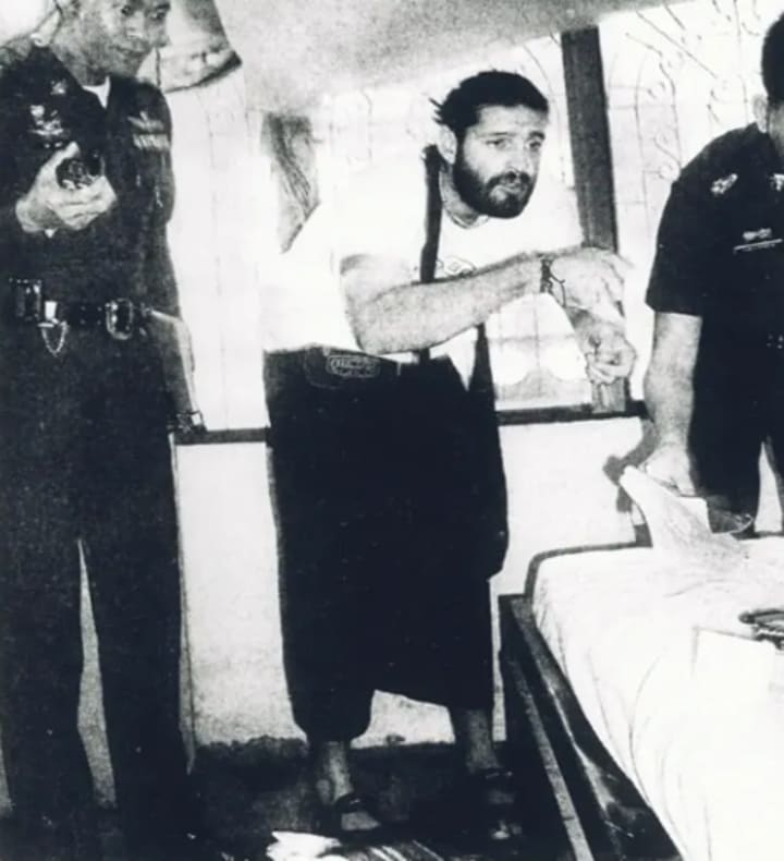 He was eventually tracked down to a bar in Chiang Mai and arrested, despite DNA tests proving he was not a match to the sample recovered from the crime scene.