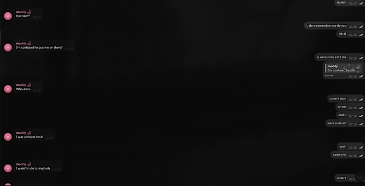 After the relationship ended, sources say she was reassigned a vanity role labeled "rich" — still listed under the same alias, still visible to Doxbin's user base.