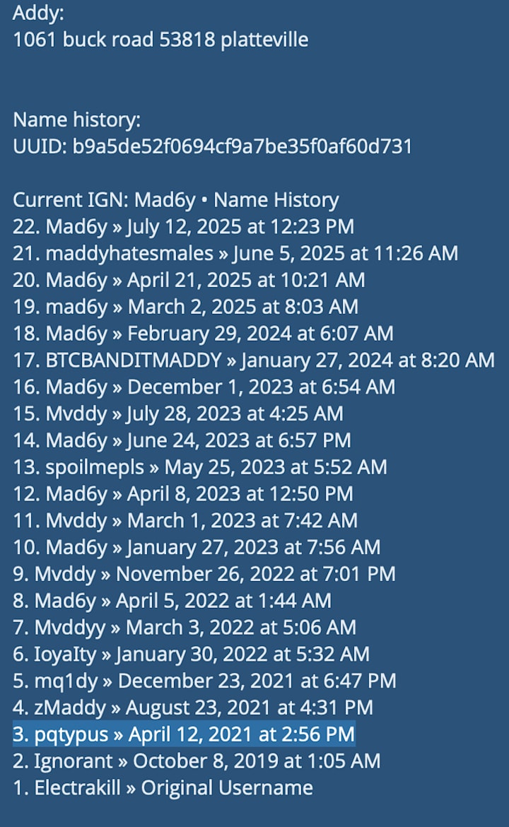 Perhaps most telling is the digital alias trail. Jacquinot previously operated under the handle "BTCBANDITMADDY" — a username whose prefix, BTC, refers to Bitcoin, and whose inclusion of "bandit" needs little interpretation. The alias has appeared across multiple platforms connected to cryptocurrency fraud discussions.