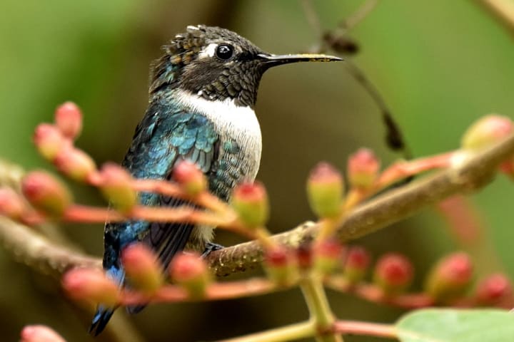 Bumblebee hummingbirds are the second smallest birds on Earth. They are endemic to Mexico. They inhabit pine-oak and evergreen forests, cloud forests, and humid scrub. These birds are known for their rapid, agile hovering with short curved wings and straight needle-like bills that are just right for nectar feeding. Male birds add a splash of color to their forest environments.