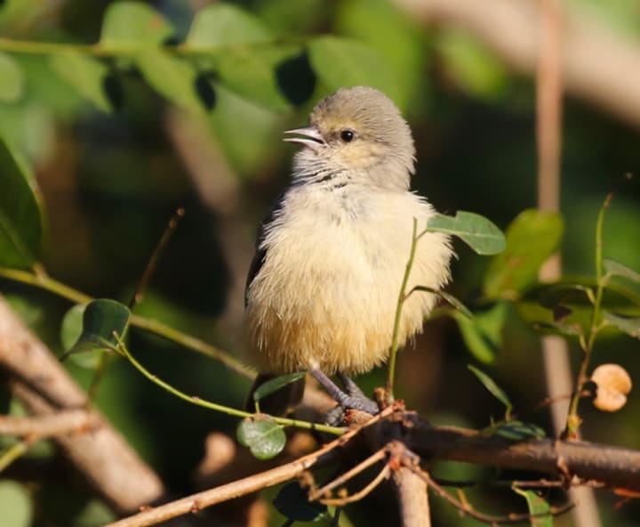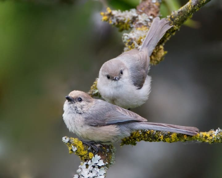 Bushtits are found in the open woodlands and scrub from the western U.S. to Guatemala. They are the smallest passerine birds in North America. They have rounded heads, long tails, and nimble frames as they actively flit through trees and shrubs. They inhabit oak and pine-oak forests, pinyon-juniper woodlands, chaparral, streamside thickets, and even parks and suburbs. These birds are social and move in tight, chattering flocks, making soft calls. Bushtits pick insects from leaves and twigs. They have soft, gray-brown plumage that is like a camouflage.