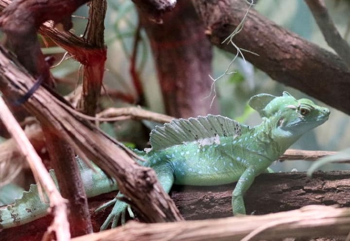 Inhabiting Central and South America, plumed basilisks are often called “Jesus Christ lizards" due to their ability to “walk” across the surface of water for short distances. They have a crest of skin on their heads and necks, giving them a distinctive appearance. They primarily consume insects such as crickets, grasshoppers, and beetles, and as they mature, their diet can include small rodents, birds, and amphibians.