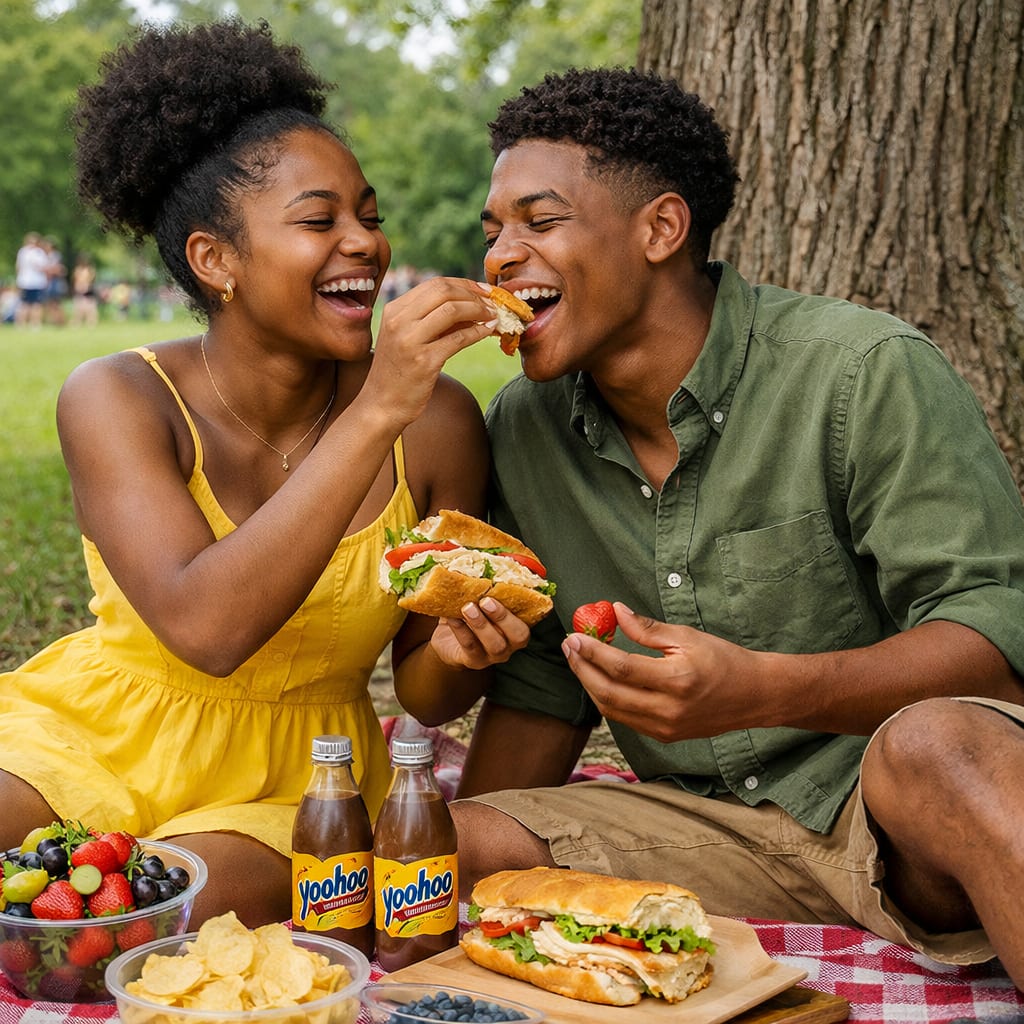 "Good because I brought your favorites." With a sudden shift in mood. Savannah giddily takes a seat and opens up her picnic basket to turkey subs, barbeque chips, snickerdoodle cookies, and ice-cold Yoo-hoos.