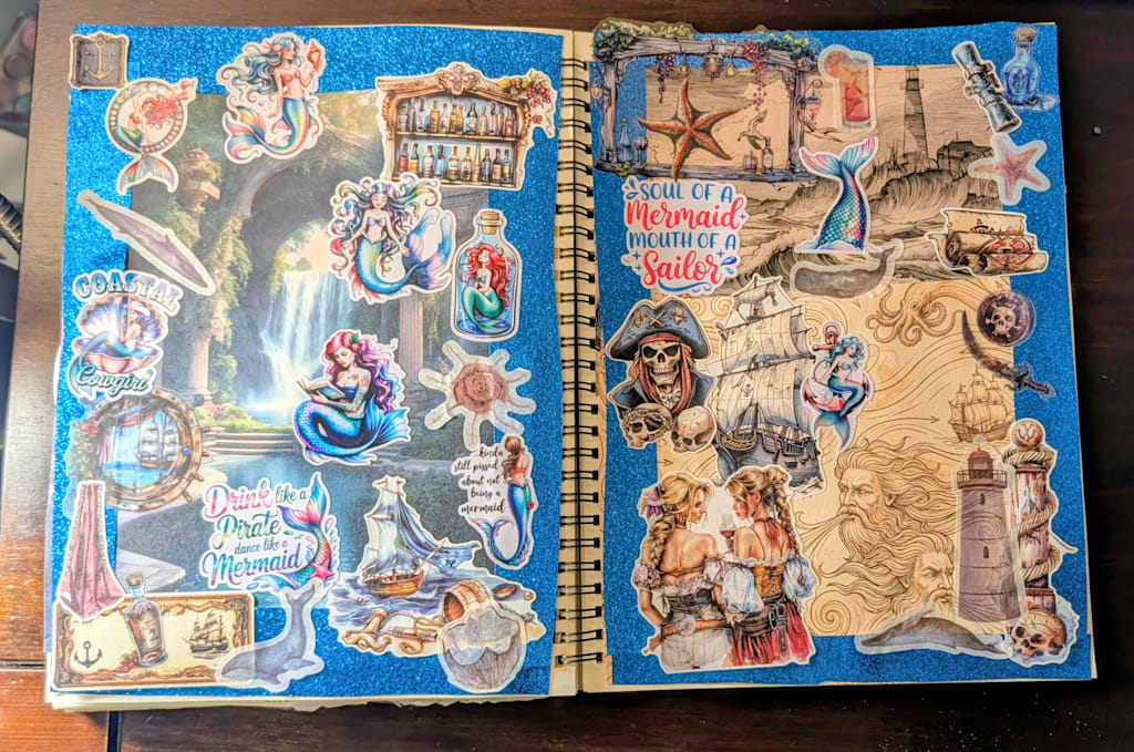 One day a mermaid saw a group of pirates scuba diving. She was interested and swam up to ask them what they were up to. They told the mermaid about how there was treasure under the surface. They held up some they had found and then the mermaid swam down to help them. She told them about how she enjoyed watching their sword fights and wanted to learn from them. They made a deal that if the mermaids swam down to find treasures for them that were long lost and could not be found even with scuba diving, that they would teach them sword fighting and share the treasure.
