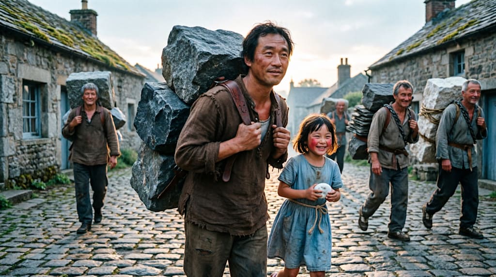 He wasn't alone. The village was a sea of rhythmic, swaying bodies. Mrs. Gable, the baker, was currently wrestling a massive, jagged slab of granite onto her display counter. It was strapped to her waist, dragging behind her with a sound like grinding teeth. She was eighty years old, and the stone—her husband—clearly weighed more than she did.