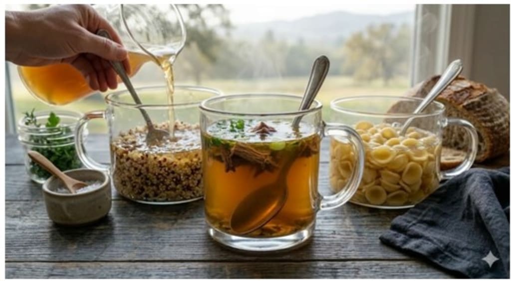 The Post-Workout Recovery: Instead of a sugary protein shake, I found that a warm bowl of broth helped soothe my joints and muscles after a long gym session.