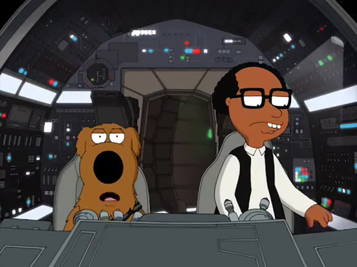 In one of the last scenes of the movie when the former baron administrator of Cloud City is taking off with Chewbacca in the Millennium Falcon to search for Boba Fett and Han Solo, he is wearing a white shirt and a black vest, just like Han had. Even Seth MacFarlane made a reference to this in his Family Guy spoof of TESB, "Something, Something, Something, Dark Side," when Brian Griffin's version of Chewbacca asks Lando why he’s wearing Han’s clothes and then breaks the fourth wall saying, “Seriously, watch the actual movie. Lando is wearing Han’s clothes in this scene. It’s really weird.”