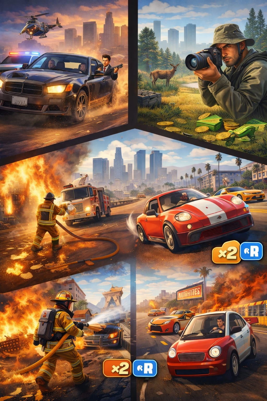 Another great option for maximizing rewards. Completing The Vespucci Job grants 2× GTA$ and RP, making it a reliable choice to stack with Dispatch Work or Firefighter missions. Focus on efficiency: plan your route, reduce downtime, and aim to chain missions in a single session.