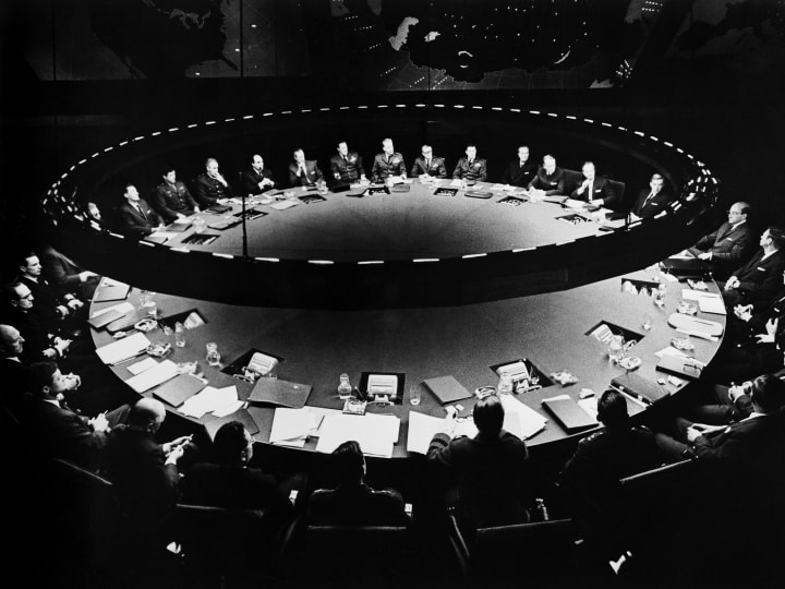That's why Dr. Strangelove remains among the most relevant and necessary movies ever made. It's a horror movie about nuclear weapons. It's a horror movie about the egos of people we choose to elevate as leaders. It's a horror movie about how frail and human we all truly are, always vulnerable to annihilation on a whim. Distract yourself all that you like, but Dr. Strangelove is always lurking and will always be there as long as weapons of mass destruction exist at just the push of a button, the turn of a key, or a phone call from one leader to another.