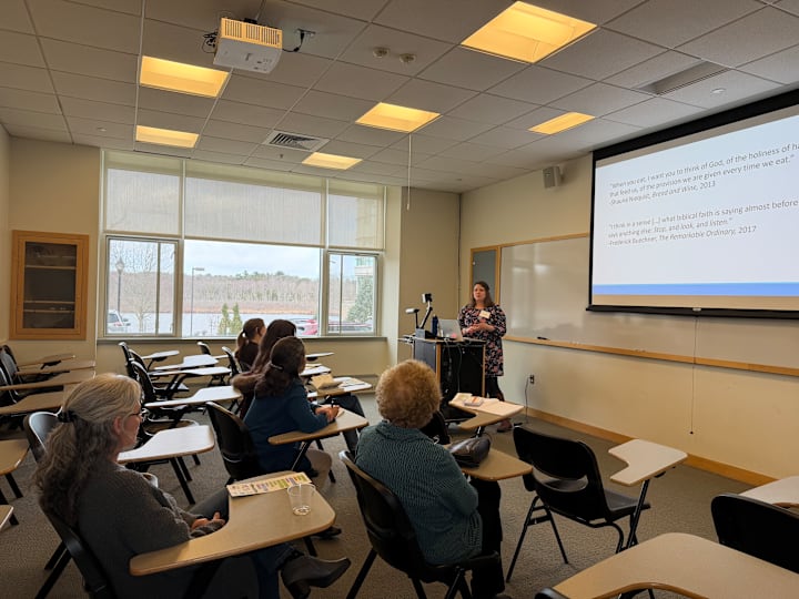 My favorite workshops included: ‘Listen Up: Music as a Way to Tap into the Primal in Writing,’ taught by Gordon professor Bryan Parys, and ‘Taste and See,’ taught by Jen Christianson, A Gordon College alum.