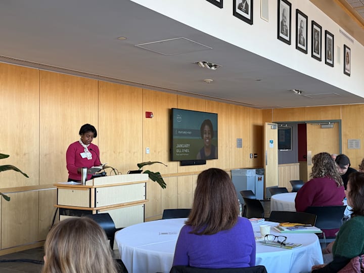 Featured poet January Gill O'Neil reading her poems at the festival.