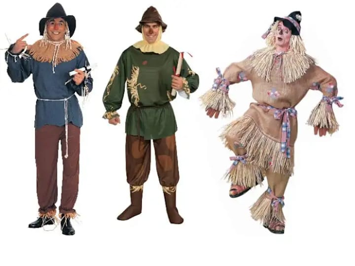 Men's scarecrow Halloween costumes do a pretty good job of matching Ray Bolger’s clothes. There is some discrepancy in the colors, and they look a lot cleaner, but it is obvious who this costume represents.