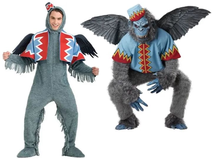 There were only two flying monkey Halloween costumes available for either men or women. They were a full-body grey monkey suit with a blue and red vest. The only option available was the full monkey mask or to use your own face. The hat size goes with whichever costume you pick. All other flying monkey costumes were for dogs.