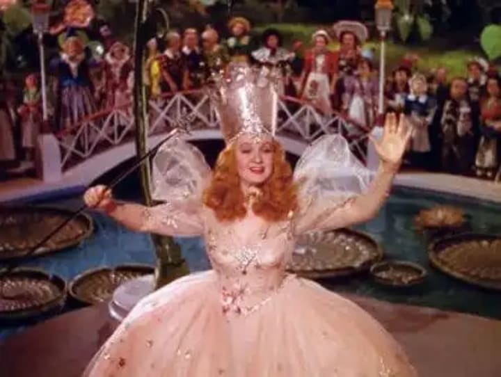 The Glinda Halloween costumes get you thinking about the whole mentality of costume design. It is understandable that Billie Burke’s fairy costume would not be practical for people to wear on Halloween. The huge hoop dress and gigantic shoulder ruffles would make maneuvering in a crowded environment next to impossible. The tall tiara crown would make any doorway a challenge.