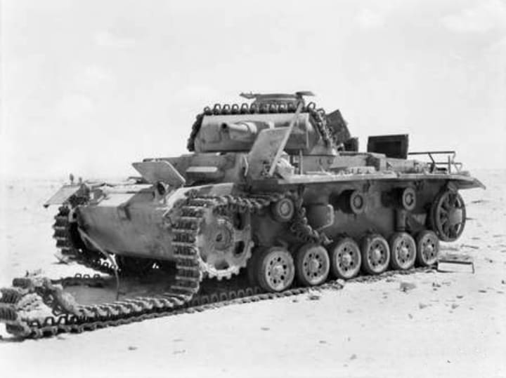 During the Second World War the deserts of North Africa had become a battleground for the British, Italian, and German armies. The Suez Canal was the target for the Afrika Korps, which, if taken, would cut Britain’s oil supplies. By 1942, the Afrika Korps had won a notable victory at the Battle of Gazala when they took the British at Tobruk, and only the British Eighth Army at El Alamein stood in the way of their advance towards the Suez. Britain had hundreds of thousands of troops to call upon, and with a greater number of tanks, they had enough to defeat the Afrika Korps at the Battle of El Alamein. The Afrika Korps retreated from El Alamein, and short of fuel and other supplies, they would surrender to the Allies in Tunisia in 1943.