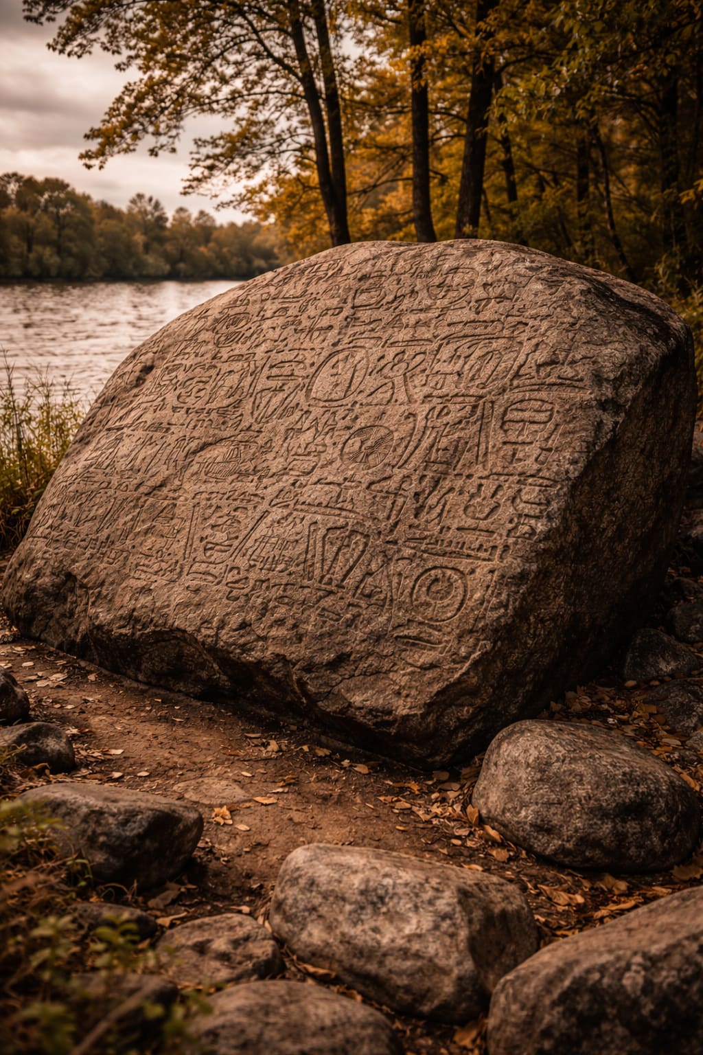 On the banks of the Taunton River in Massachusetts rests a massive, 40-ton boulder known as Dighton Rock. At first glance, it looks like any other glacial remnant... rough, weathered, unremarkable.