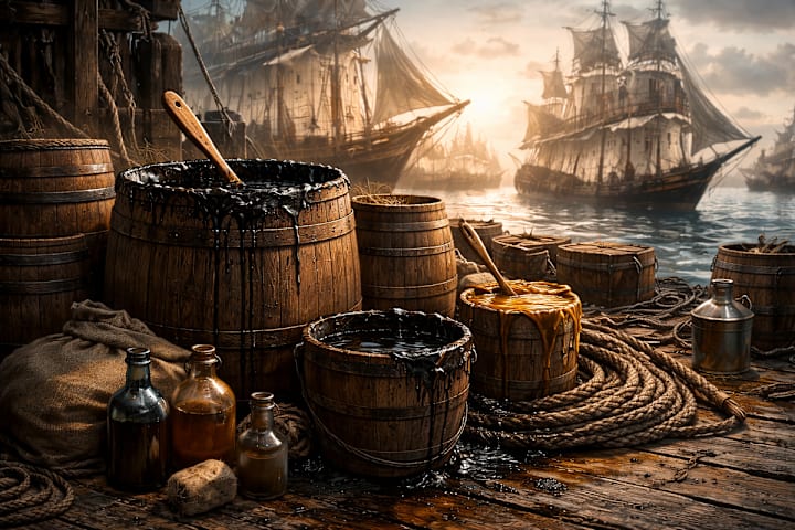 When people talk about the sailing age, they usually remember sails, cannons, admirals, and sea battles. But behind that dramatic image stood the daily work of preserving the ship itself. Tar, pitch, rosin, and the rest of the naval stores were part of that quiet but necessary foundation.
