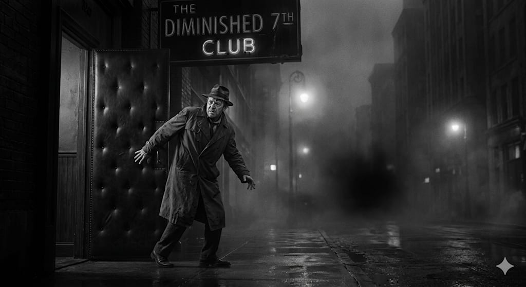 The name itself was a warning. A diminished seventh chord is structure built of stacked minor thirds—a harmonic house of cards with no true root, no tonal center, completely unstable and desperate to resolve. The perfect name for a sanctuary of damned. I pushed through the heavy, padded leather door, expecting the thick smell of stale gin and the numbing embrace of oblivion.