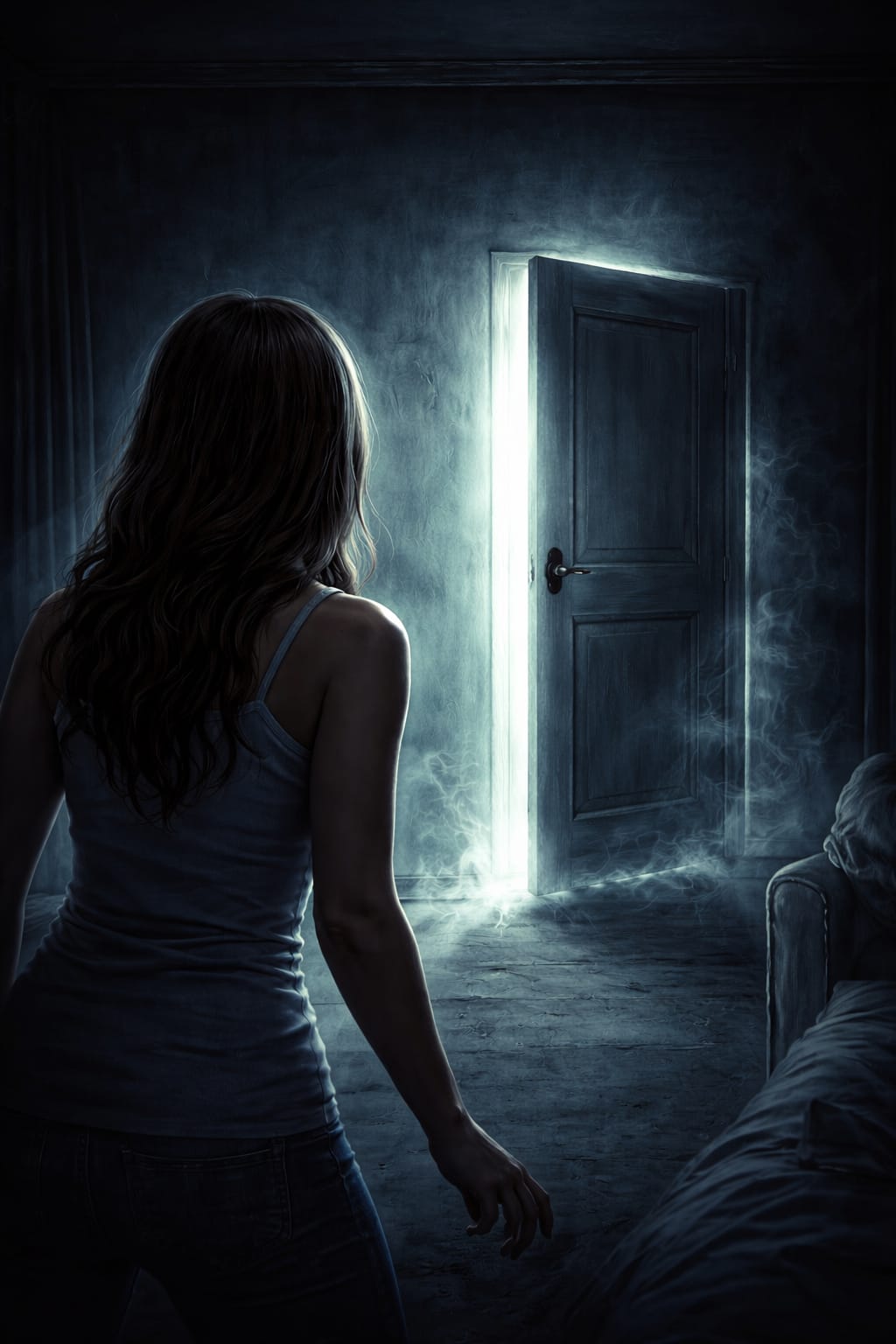 The door creaked open just an inch, spilling pale light into her room. The air turned cold. Lina stepped back, but couldn’t look away.