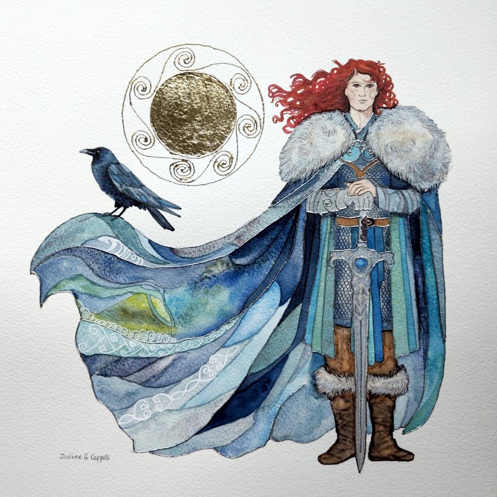 The full story of Nuada Airgetlám - King of the Tuatha Dé Danann is on the link below, but this is obviously a major influence on Michael Moorcock's "Corum of the Silver Hand" that I covered here, and looking at Justine's painting, I see the silver hand: