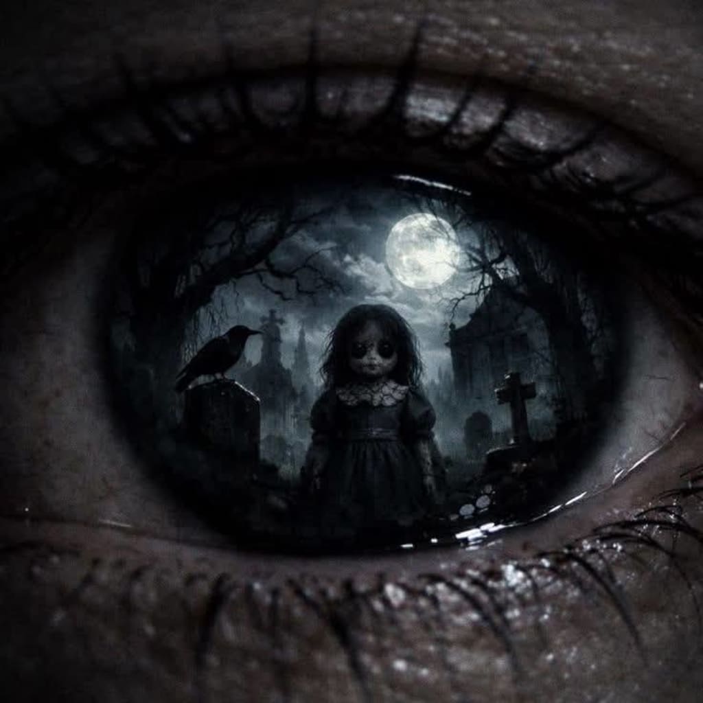There’s a doll in the center with a porcelain stare,