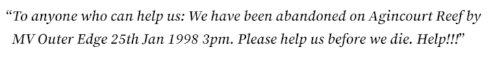 When the Outer Edge returned to shore that day, neither the crew nor the passengers realised that two people were missing.