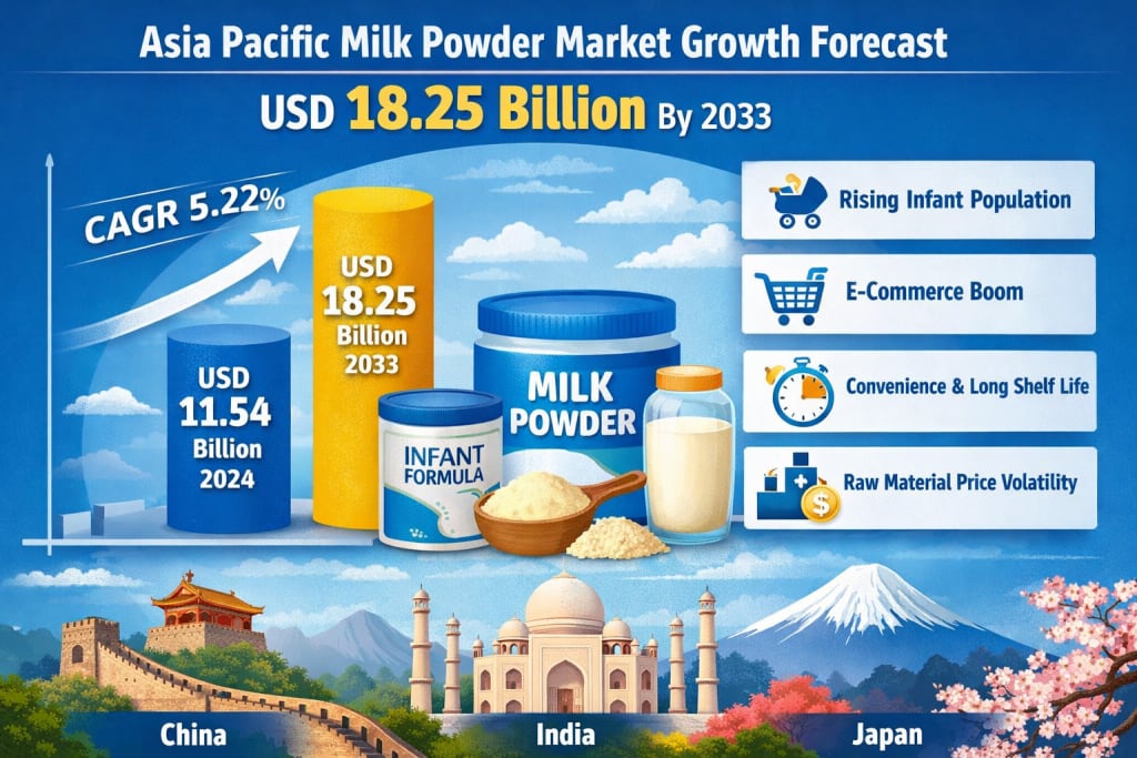 Asia Pacific Milk Powder Market Set to Reach USD 18.25 Billion by 2033 Amid Rising Demand for Nutritional and Convenient Dairy Solutions