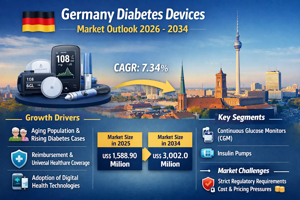 According to Renub Research, the Germany Diabetes Devices Market is projected to rise from US$ 1,588.90 Million in 2025 to US$ 3,002.0 Million in 2034, expanding at a CAGR of 7.34% from 2026 to 2034 . That kind of growth is not simply the result of more products entering the market. It reflects a broader transformation in how diabetes is being diagnosed, tracked, and treated in one of Europe’s most advanced healthcare systems.