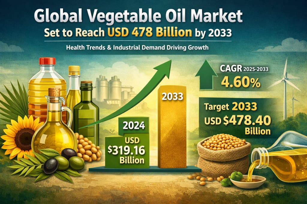 The global vegetable oil market is entering a transformative phase, driven by evolving consumer preferences, industrial expansion, and steady population growth. According to recent insights, the market is projected to grow from US$ 319.16 billion in 2024 to US$ 478.40 billion by 2033, registering a compound annual growth rate (CAGR) of 4.60% between 2025 and 2033 . This upward trajectory reflects the increasing importance of vegetable oils across food, industrial, and energy sectors.