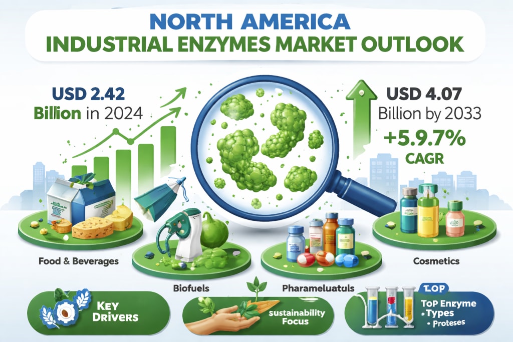 The North America Industrial Enzymes Market is entering a decisive phase of expansion, driven by a convergence of sustainability goals, technological innovation, and rising industrial demand. According to recent market insights, the sector was valued at USD 2.42 billion in 2024 and is projected to reach USD 4.07 billion by 2033, growing at a CAGR of 5.97% between 2025 and 2033 .