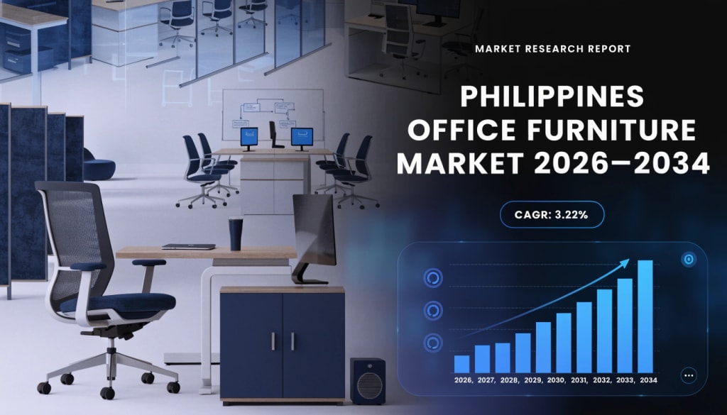 According to IMARC Group, The Philippines office furniture market size reached USD 1,356.4 Million in 2025. Looking forward, the market is expected to reach USD 1,819.3 Million by 2034, exhibiting a growth rate (CAGR) of 3.22% during 2026-2034.