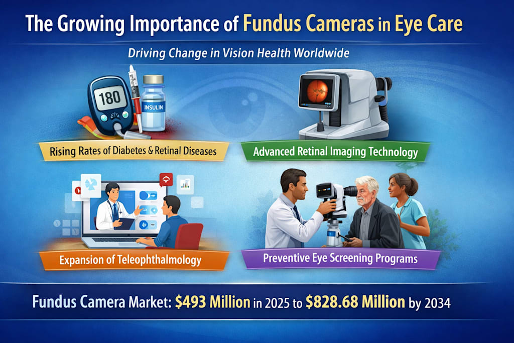 According to Renub Research, the Fundus Camera Market is expected to rise from US$ 493 Million in 2025 to US$ 828.68 Million by 2034, expanding at a CAGR of 5.94% from 2026 to 2034. That trajectory is not just about technology upgrades. It points to a global increase in retinal disorders, diabetes-related eye complications, ageing populations, and the urgent need for accessible vision screening