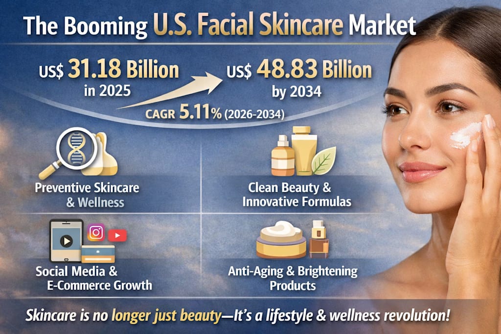 The U.S. facial skincare market is not growing because consumers suddenly want more products. It is growing because skincare has become deeply connected to how people think about health, confidence, aging, wellness, and self-expression.